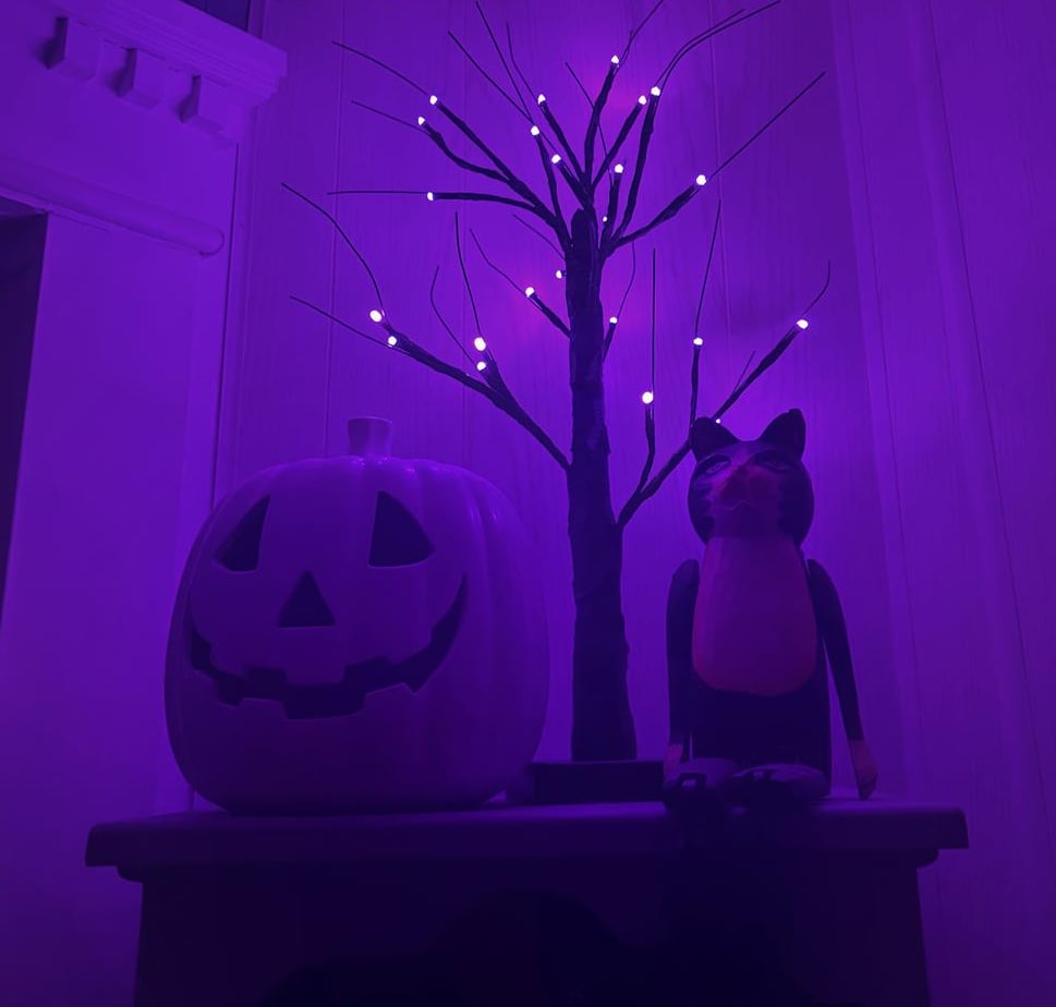 🌳 【SPOOKY GLOW】 – 48 flickering LEDs in orange & purple!